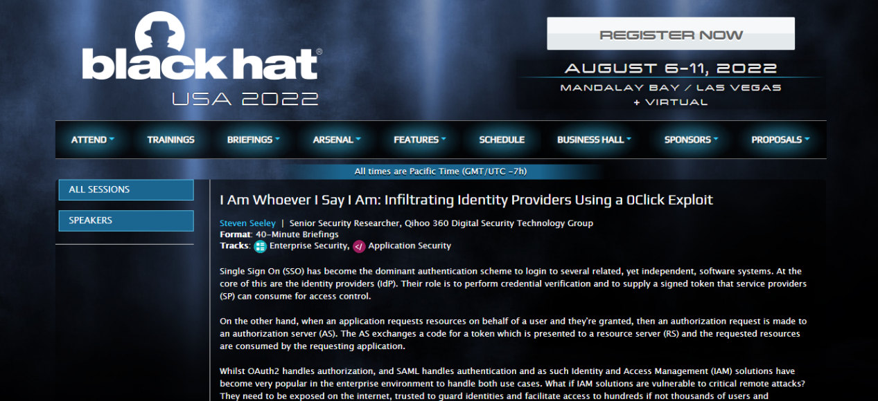 作为世界网络安全行业的盛会,世界黑帽峰会(BlackHat)至今已有24年历史,每年其都会在美国、欧洲、亚洲分别举行一次大会,其中BlackHat USA最具规模和权威性,是了解全球最新安全研究成果及安全威胁最好的窗口。对安全技术研究人员来说,能够登上BlackHat USA向世界分享自己的研究成果,象征着安全圈的最高荣誉。