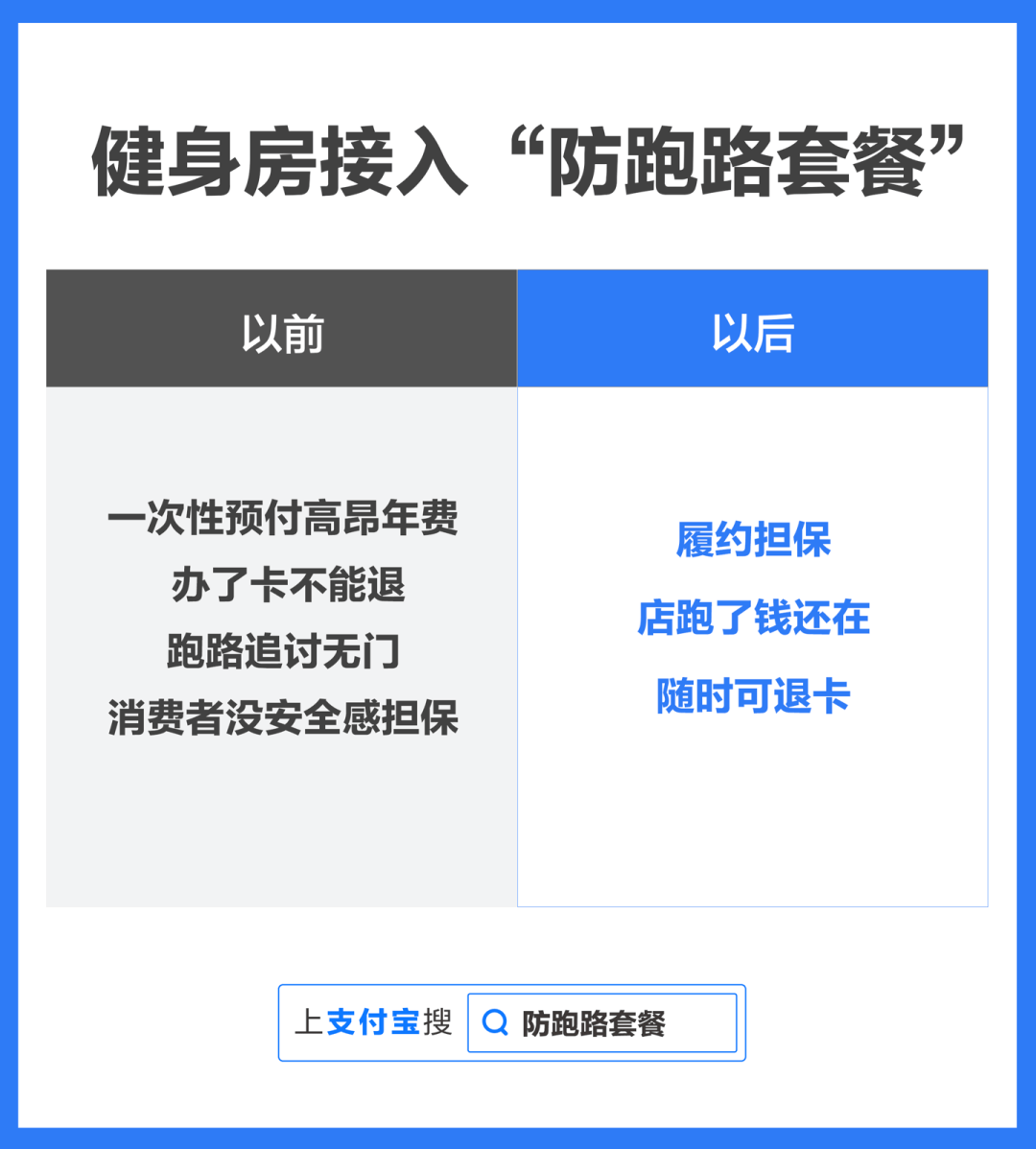 除了健身行业接入“防跑路套餐”,支付宝还将联合更多商家接入,共同消除预付费模式陷阱,保障消费者权益。