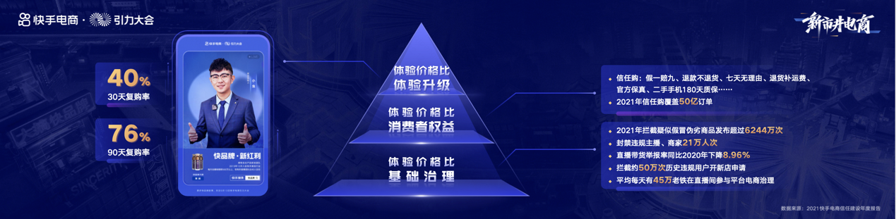 对于“大搞信任电商”,快手给出的最新定义是:通过提高“体验-价格比”,实现消费者体验和满意度的跃迁。