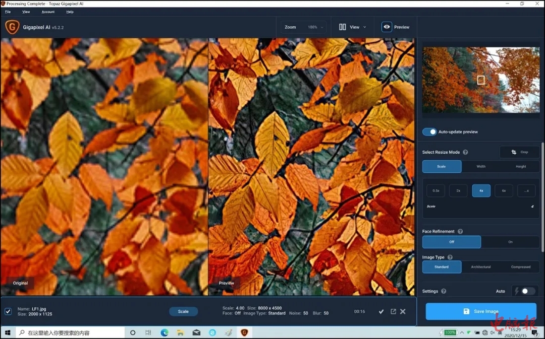 ▲Gigapixel AI是非常典型的个人电脑本地化AI应用。