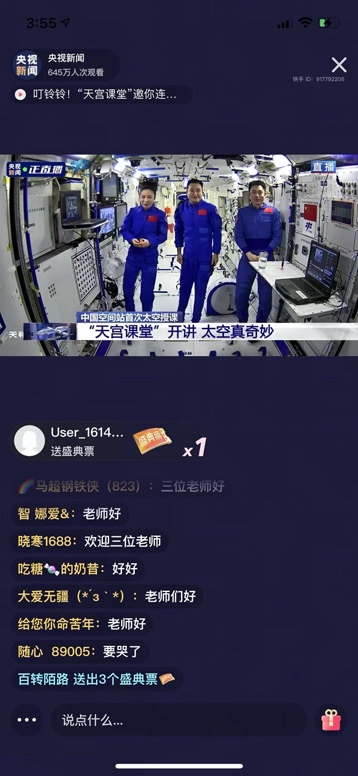 连线结束的吴姥姥也对记者表达了参与此次直播的感想:“在直播之前,我就一直很期待,做了很多的猜想,而且准备了四个实验。我自己可以在地面上这么做,天上到底怎么做呢?我留了一点悬念,给网友们一些想象空间。”随着大家对于泛知识内容的需求越来越强,越来越多像吴姥姥一样的老师通过短视频+直播的形式进行科普。“在快手平台我和周思益同学,和北京的化学教授戴博士一起直播,一起和广大网友享受科学的乐趣,我觉得是一个比较好的形式。”吴姥姥说。