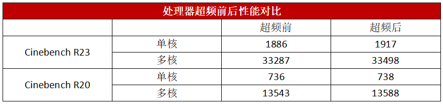在测试中,我们将BIOS中的Max CPU Boost Clock Override一项设置成200,然后重新运行了Cinebench R23和Cinebench R20。可见不管是单核还是多核成绩都有了进一步的提升,让锐龙9 7945HX超强的性能得到极致地释放。