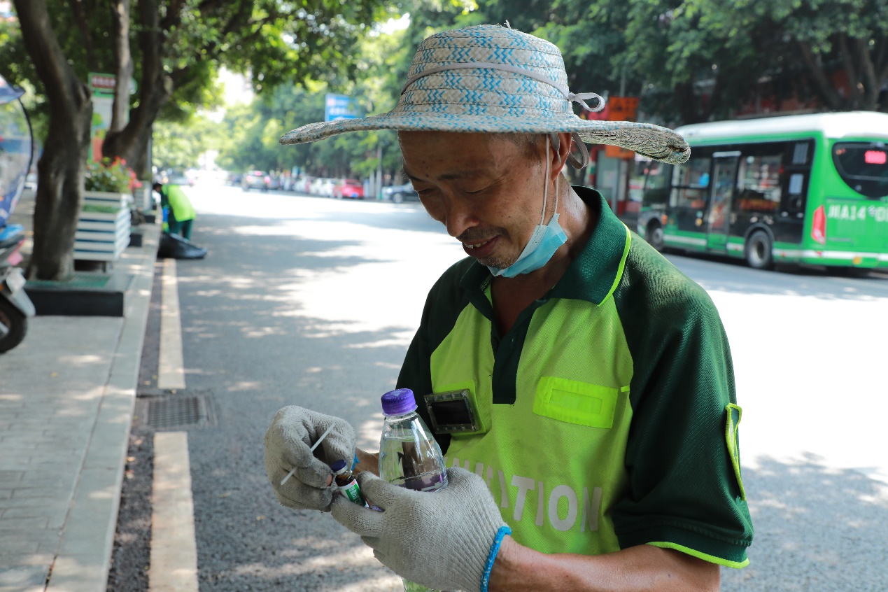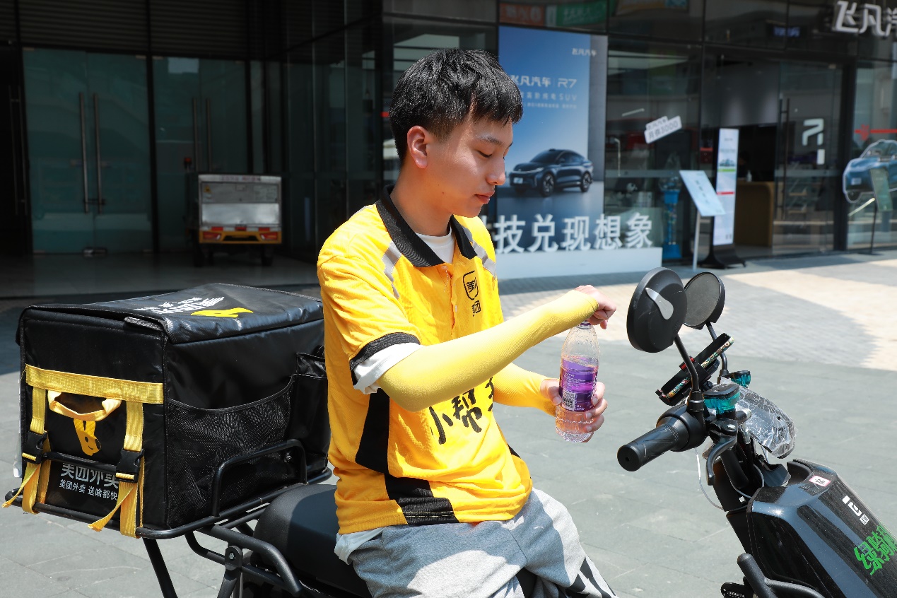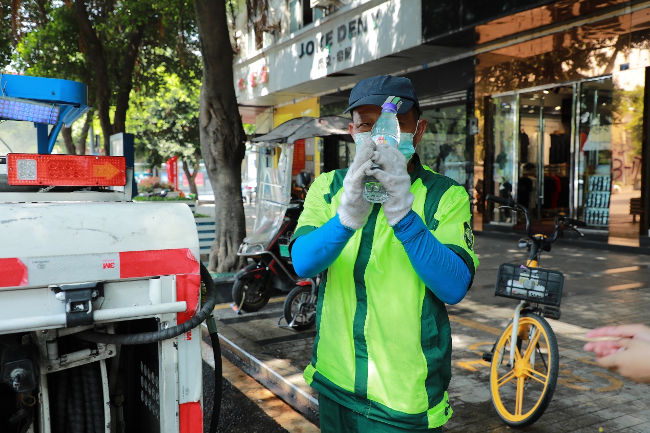 为工作在一线工作人员准备了藿香正气水、金银花水、矿泉水、可乐等防暑降温必备物品,营造夏日清凉氛围。将防暑礼包送到环卫工人、快递小哥、外卖小哥手里,在成都炎炎夏日带去一丝凉意,为坚守一线岗位的员工致敬。同时现场呼吁广大市民争做文明市民,尊重环卫工人劳动成果,不乱扔乱丢垃圾,减少环卫工人、一线小哥劳动强度,共同守护我们美好的家园。