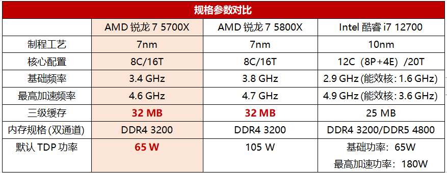 与竞争对手的酷睿i7 12700F相比,锐龙7 5700X的优势在于所有核心均为全规格大核心,应付各种应用都能表现得游刃有余,而且目前系统、软件对于ZEN3架构的优化更加到位,用户遇到的各种兼容性问题也会更少,整体游戏小有优势。另外酷睿i7 12700在PL2功率模式下功耗达到180W,也是比锐龙7 5700X高出不少。