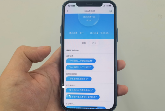 图1:智能款净水器可在智能音箱端及APP查询水质情况
