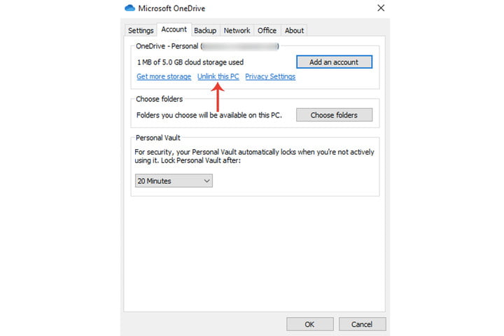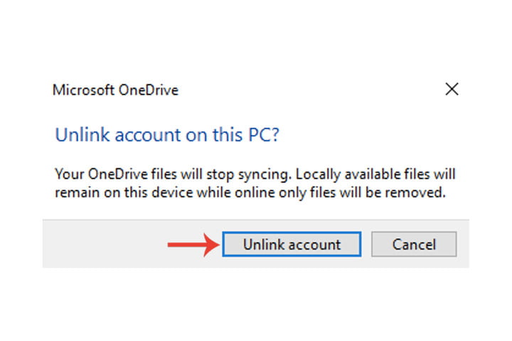 第 4 步:单击取消链接账户按钮,之后你的文件将停止同步到你的 OneDrive账户。