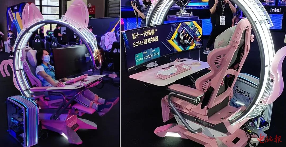 其实前面展示的很多东西,比如各种精彩的MOD主机,电竞椅套装,NUC产品,都是在英特尔展馆的。而绝大部分PC厂商的游戏电脑新品,也都在英特尔展馆展示,这一切的背后,都有英特尔的身影。