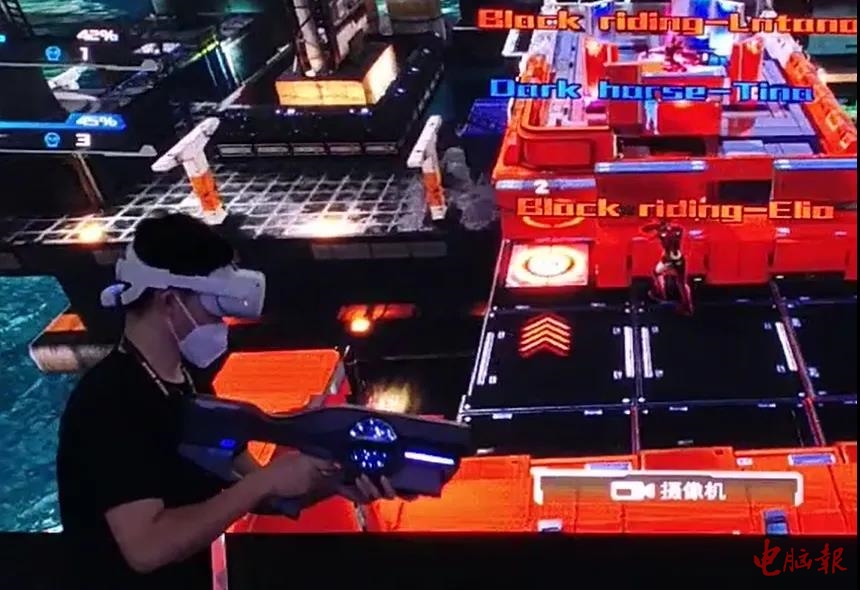 大家知道,2018年左右,VR行业快速崛起,各类VR公司如雨后春笋般冒出,但又很快消失。这里面有很多因素,其中一个原因就是VR设备背负起来太过沉重,体验不佳。但英特尔对于VR的热情从未减弱,除了不断开发专业领域的VR应用(比如VR手术训练、VR高风险行业实操训练),英特尔还一直为NBA和奥运会提供VR转播方案。而在电子竞技领域,英特尔也开始将高带宽低延迟的5G、WiFi 6/6E等技术融合,同时利用强大的硬件,将VR游戏和电竞设备进行升级换代,由选手携带设备改为“无线+边缘计算”的形式,本次CJ上展示的VR电竞游戏,选手就仅需戴上VR眼镜,握持“动作感应枪”参赛▼。我们相信在技术的变革和英特尔的持续投入下,VR电竞终将盛放。