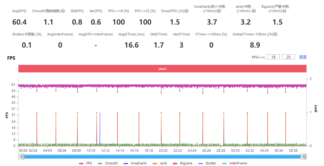 功耗方面,根据PerfDog的监测计算,其40分钟游戏时的整机平均功耗为6033mW,功耗表现比较不错,在提供更高性能保证高帧率的同时,这个整机功耗并不算高,能耗比还是非常不错的。