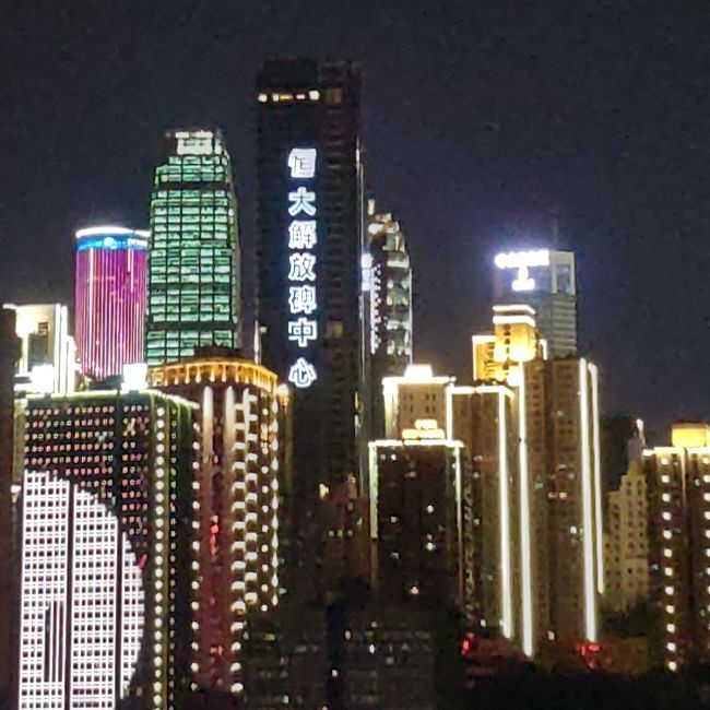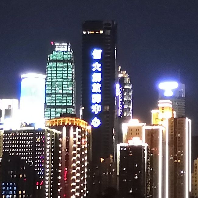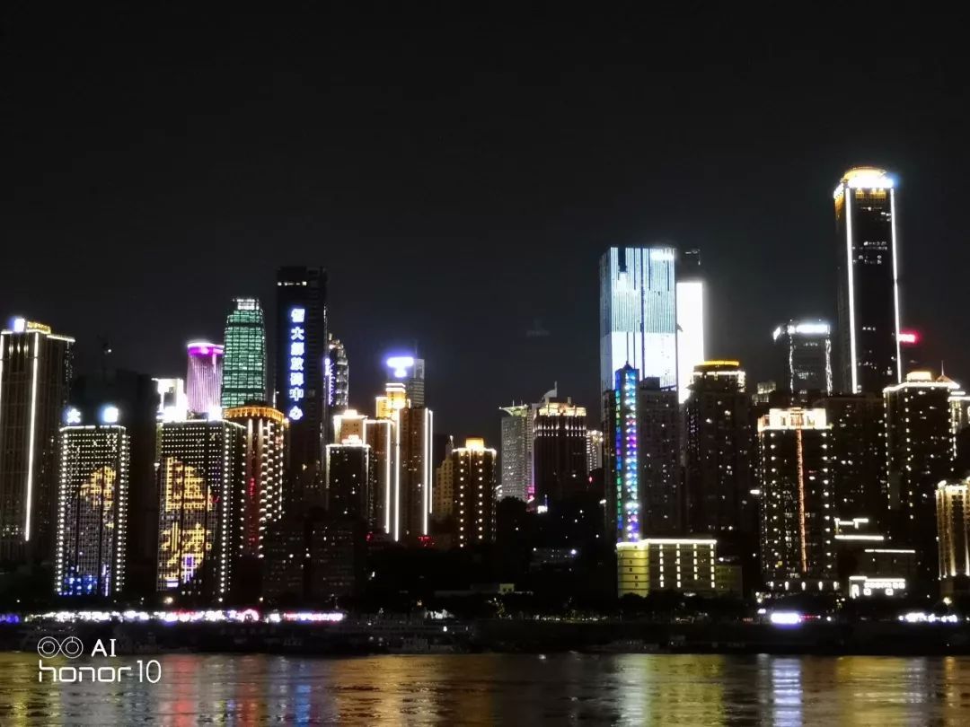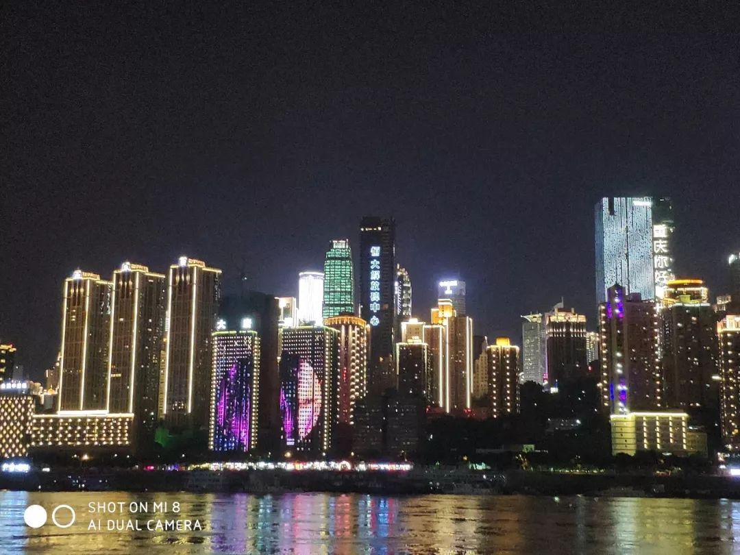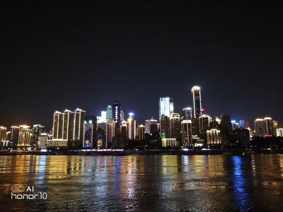 而在两倍变焦模式下,荣耀10的噪点控制同样更好,但遗憾的是暗部细节基本没了。反观亮部,同样以恒大解放碑中心作为参照物,左右两侧高楼的灯光同样是高光溢出,糊成一片,。而小米8在这一环节表现就要更好一些,除了前面提到的霓虹灯,江面也有波光粼粼的感觉。