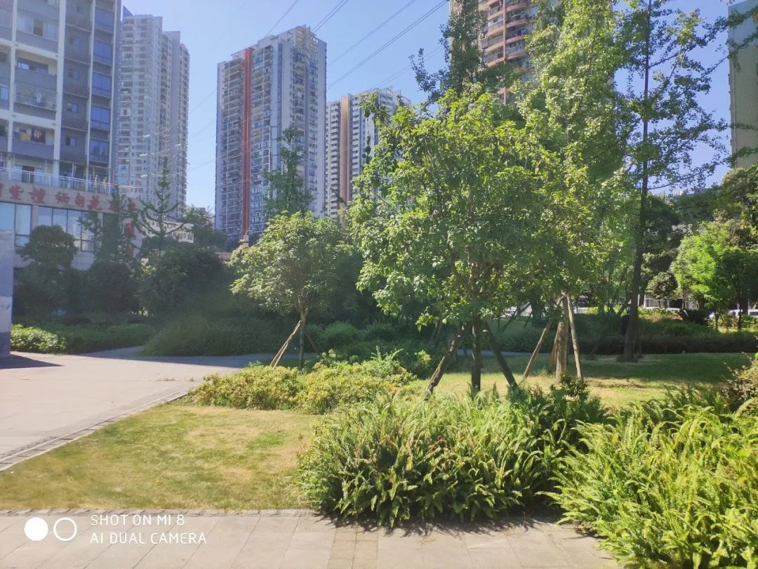 重庆近段时间一直暴晒,直逼40℃,阳光非常强烈,在这种比较“极端”的光线环境下(未开启HDR),两款手机的表现都不错。对比之下,小米8的画面有些泛白,特别是光线过强的区域。而荣耀10则保持了较好的色彩还原,天空的蓝更接近真实,阳光直射的地面植被也保留了更多细节。