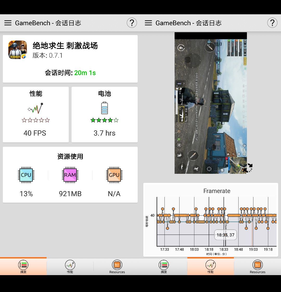 荣耀10《刺激战场》GameBench测试结果