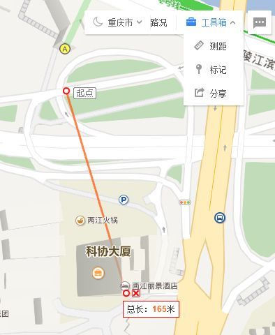 用百度地图测距工具显示,这两点直线距离达到了165米