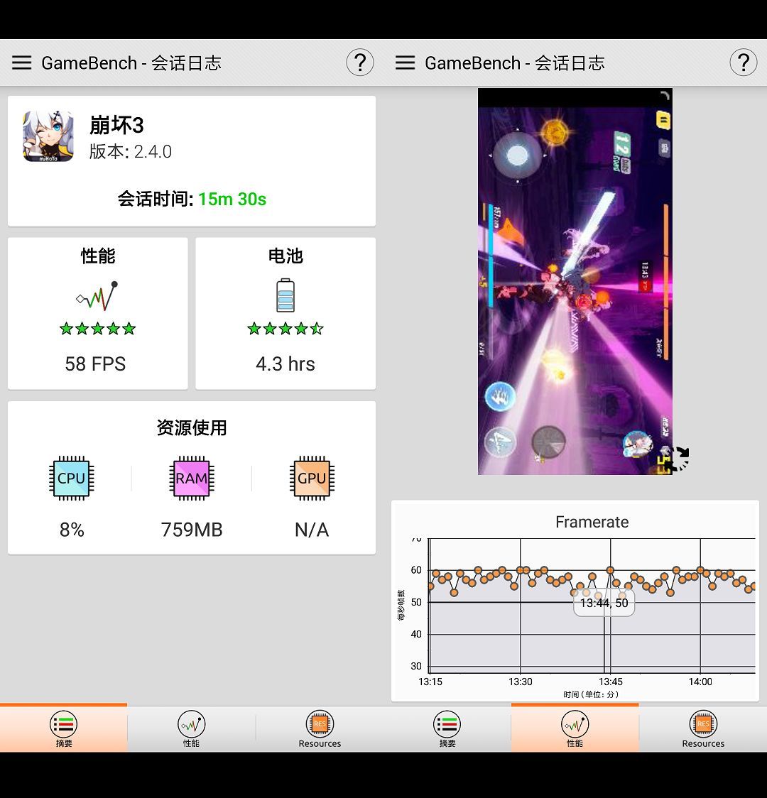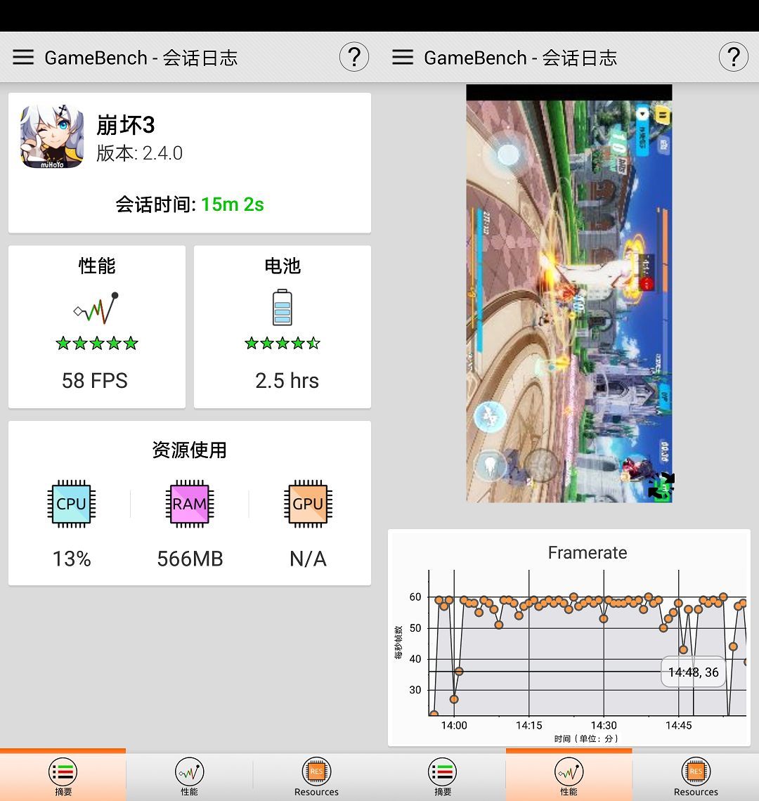 荣耀10《崩坏3》GameBench测试结果