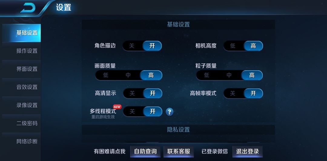 先来看玩家最多的《王者荣耀》,在测试中开启角色描边、高清显示、高帧率模式,画面质量、粒子质量都设置为高。