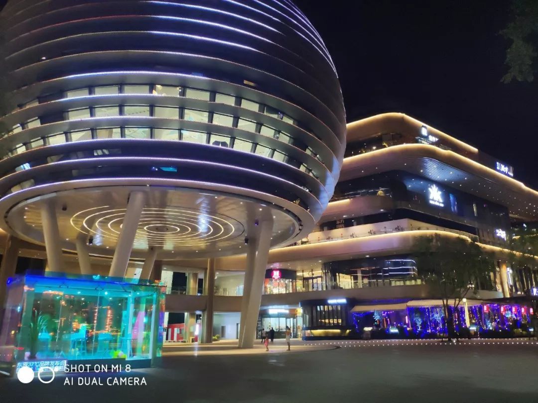 但是小米8也有表现更好的地方,比如右边楼房顶层的霓虹灯,能清晰看到“创作”二字,荣耀10则是一片亮斑,灯带也比较模糊。