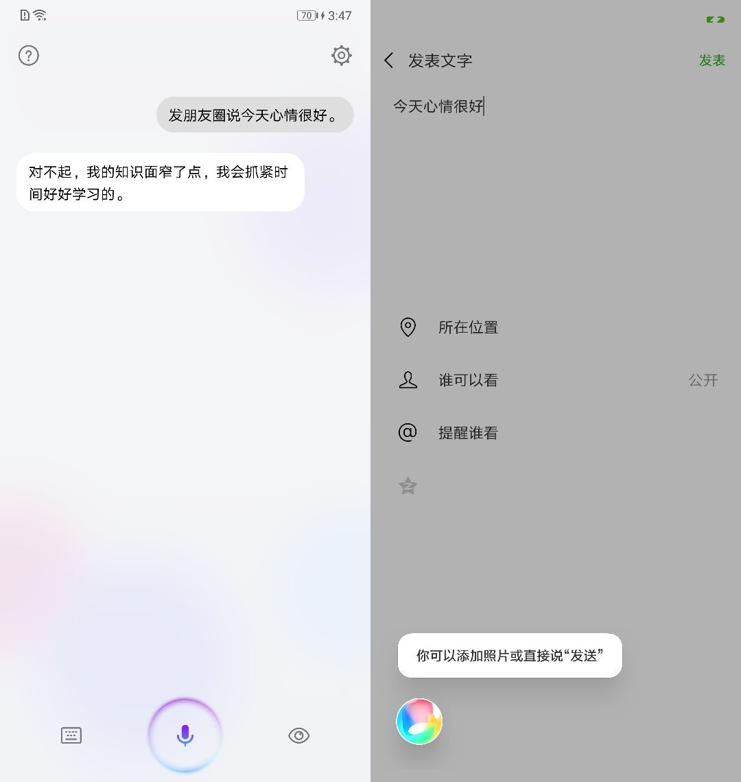 先来看唤醒方式,两个智能助手都可以通过语音唤醒,对手机说出“我的荣耀”(个人感觉有点中二)或者“小爱同学”就能呼出,而且都能通过“训练”识别主人的声音,避免其他人声干扰。