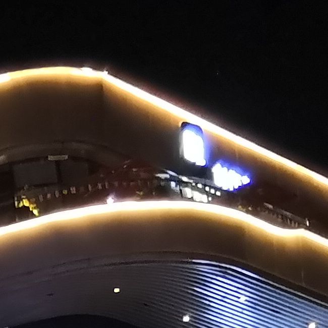 再来看一组不那么极端的夜景,注意左下角的彩色玻璃房,荣耀10的细节表现更好,小米8则有点糊。仔细看右上角的天空,荣耀10样张中有几颗星星,而在小米8的样张中几乎不可见了。