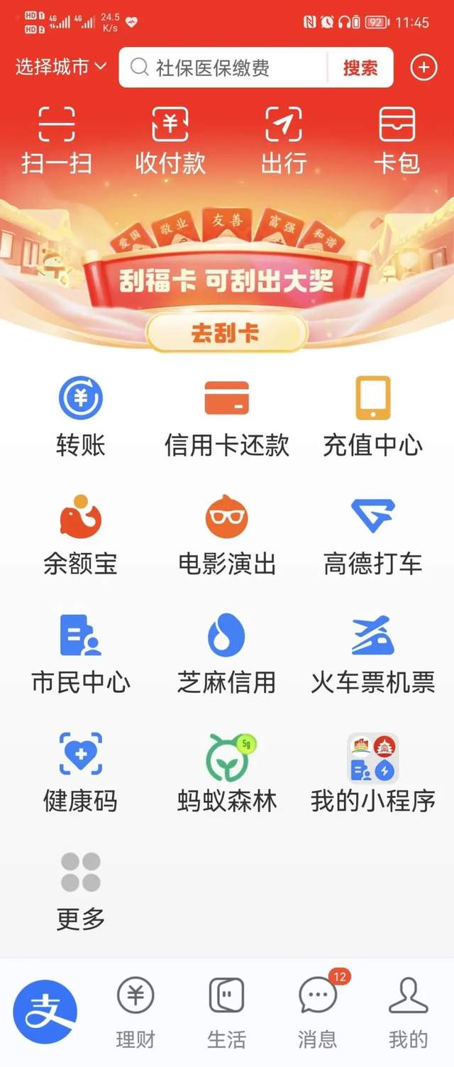 常用的健康码、扫码支付、收款码等都在首页上有了清楚的显示,看起来更像是一个纯粹的金融应用。除此之外,社保卡、公积金、乘车码等也做了单独的UI和大字体适配。顺带一提,可能是因为加载的资源少了,长辈模式下的支付宝有比标准版支付宝更快的启动速度。