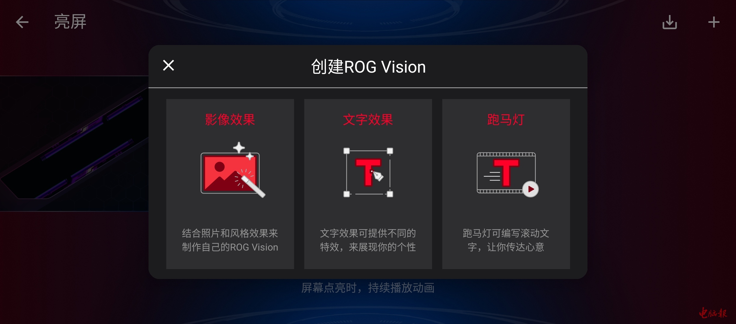 玩家可以自定义ROG个性视窗的各种状态