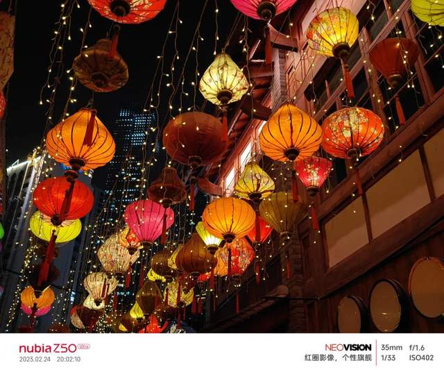 另外,努比亚Z50 Ultra的夜拍算法进步很大,没有一味给画面提亮,让主摄画面的曝光和亮度控制在一个合理的区间内,这次85mm潜望长焦的夜景表现也很到位。