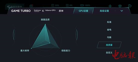 在此之前,为了探索骁龙888+的极限,先进入游戏空间的GPU设置高级设置里面,开启高质量模式,帧率和画质拉满,同时《原神》画面设置中选择60fps帧率。