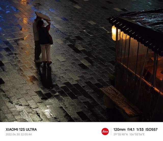 难得的是,这种准确自然的色彩呈现能力并不会对环境光线有过高的要求。或者说,徕卡本身就能够在光线和色彩之间找到一个绝佳的平衡点。即便是在一些暗光场景下,小米12S Ultra都能够带来良好的明暗细节处理。徕卡的标志性影调风格在凸显出雨天、灯光的环境对比的同时,又利用了这种影像风格呈现,让照片的整体氛围感大幅提升。