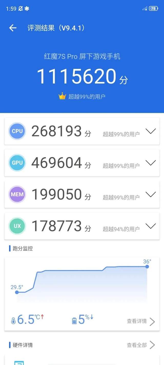 红魔7S Pro安兔兔跑分高达1115620分,在安卓阵营属于顶尖水平。作为对比,红魔7 Pro跑分为1033443,两款手机在CPU和GPU性能拉开了较为明显的差距。