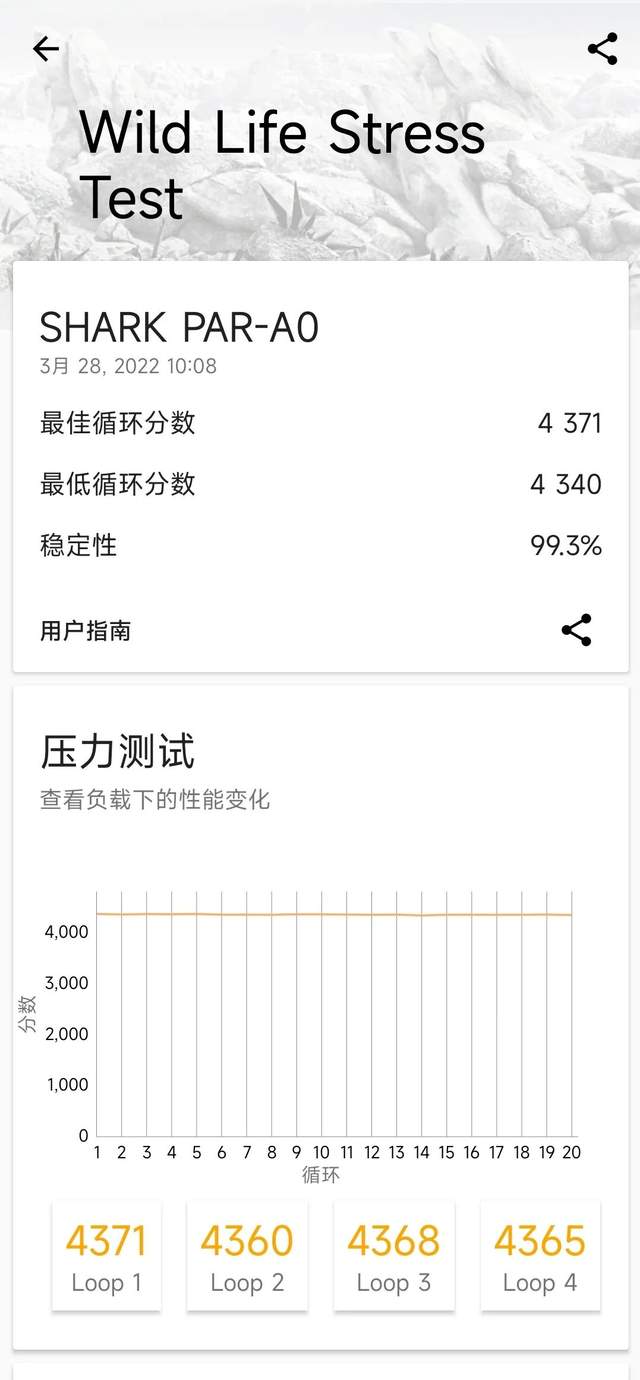 对于骁龙870平台,我们已经很熟悉了,它在性能和功耗方面做到了很好的平衡,带来足够稳定的游戏性能输出,黑鲨5在3D Mark压力测试中稳定性达到99.3%,很好的证实了这一点。不过,我还是想测试一下黑鲨5的性能极限。