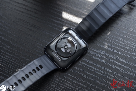 佩戴方面,OPPO Watch 2采用了全新的表带设计,这种氟橡胶材质的运动表带非常柔软,佩戴舒适性很好。表带的背面还专门设计了开槽,便于佩戴时候的透气和散热。