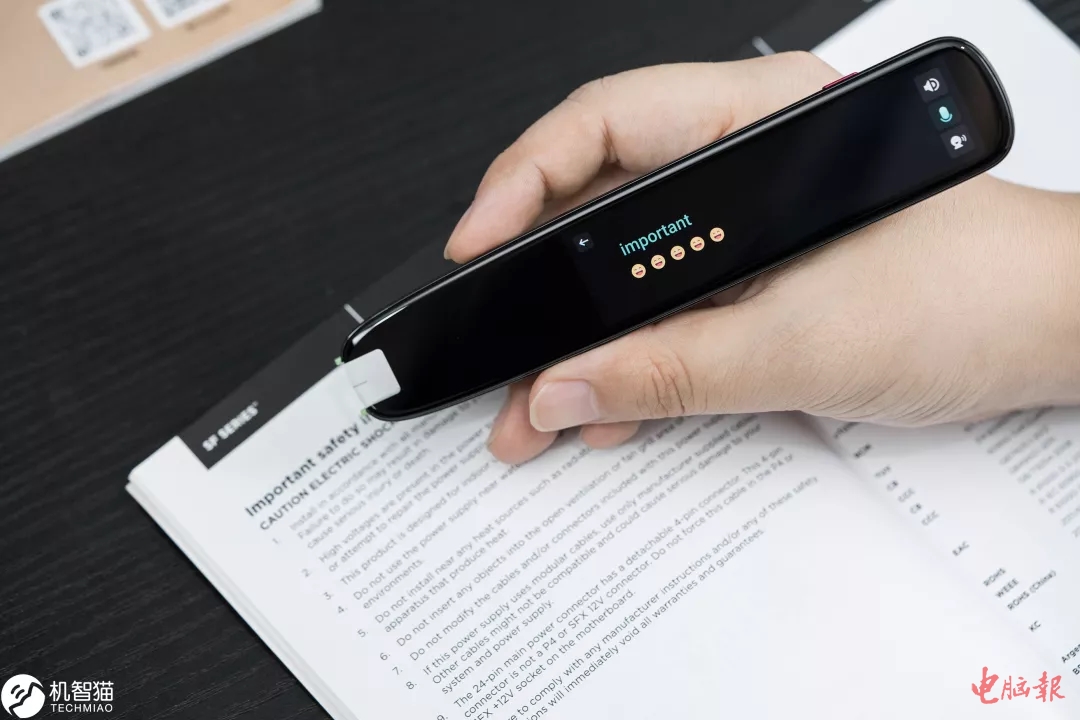为了增加难度,我还使用了计算机、金融等类别的专业书籍,以及一些电子产品的英文说明书,这些专业领域的文字也难不倒它。值得一提的是,讯飞翻译笔S11提供了拆行扫描功能(默认打开,系统设置中可关),如果在2秒内扫下一行,翻译笔就会把它当成连续的句子翻译出来。