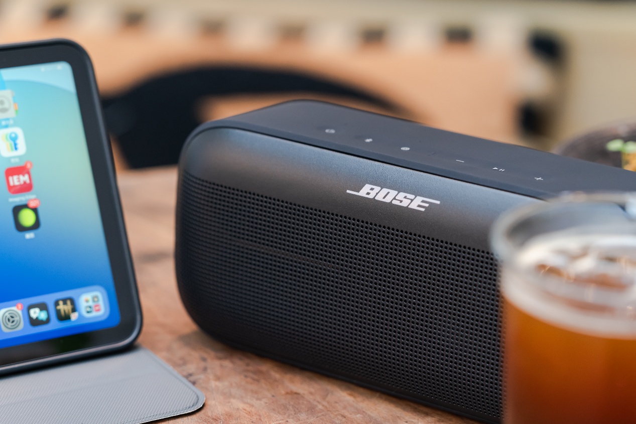 我首先试听了最近很火的F1战歌《Lost My Mind》,这首歌其实非常挑设备,开头一大段下潜极低的混音独唱男声,可以让市面上大多数小喇叭黯然失色,但是Bose SoundLink Plus可以毫无压力地从头开始抓人耳朵,一直到电子鼓点进入,再到合唱进入,声音的三重层次听感分明。边听边想找个油门踩两脚。接下来试听了菲神的《如愿》,王菲如今的唱腔不再拼嗓音机能,那种清爽的女生轻柔感在Bose SoundLink Plus上还原非常到位,特别是“星火燃起的天空”里收尾“空”字的鼻腔共鸣听出了几分现场感,非常难得。但是客观地说,高音部分的空气感有些微的失真,也就是说这款音箱更适合中低频抓耳的音乐,比如摇滚、民谣这类现场感很强的类型,听歌的氛围感非常像在听Live house。从整体音质表现来看,Bose SoundLink Plus延续了Bose一贯的中频战神的调校风格,而且改进了Bose产品低频不足的缺点,低频的灵敏度高,而且结象还原有模有样,放在普通桌面低频共振的回音效果也很让人放心。如果和Flex、Max放在一起比较,Plus并不是不偏不倚的居中位置,而是音质表现更偏Max的一款重量级选手。
