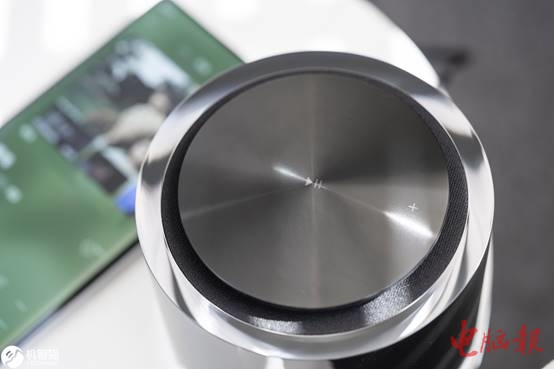 Xiaomi Sound采用了与此前任何一款小爱音箱都截然不同的设计,机身上没有任何Logo(底部有一个,但是放着看不见),如果不说,完全看不出来这是一款小米的智能音箱。