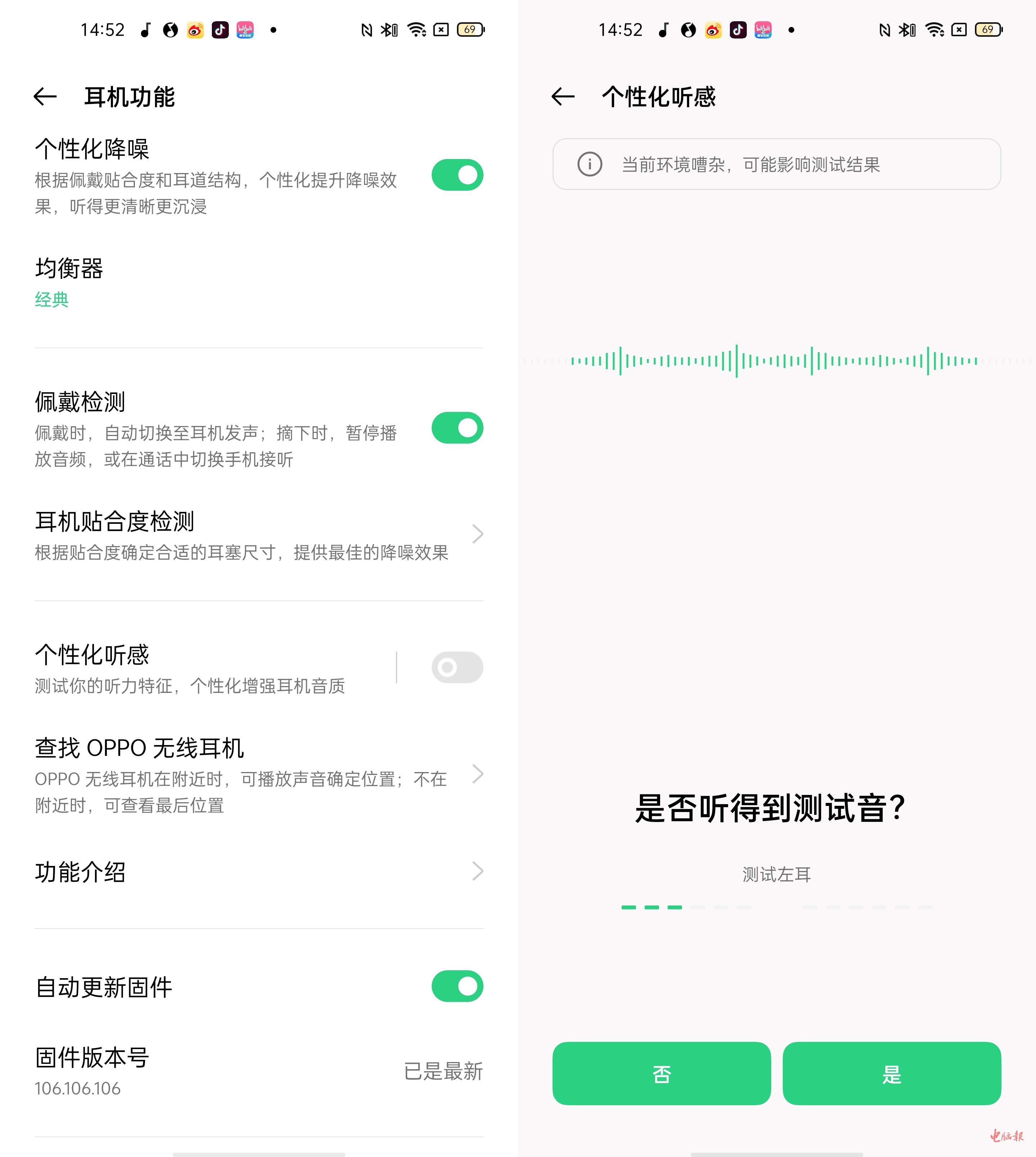 音质表现方面,Enco Free2这次依然是和丹拿进行了合作,后者负责一些音频调校方面的工作。Enco Free2还有一个个性化听感,能够根据你的耳朵对声音的敏感度,进行针对性的音频定制。在此之前,会有一个测试双耳听感的过程。