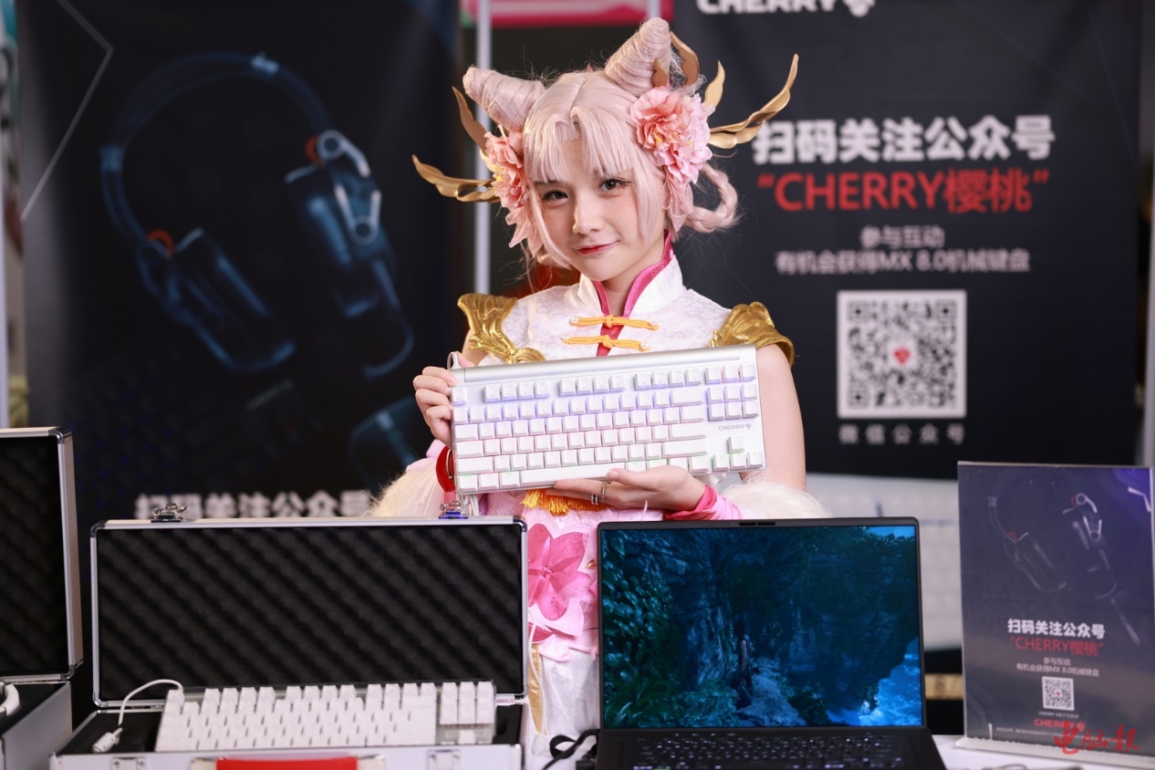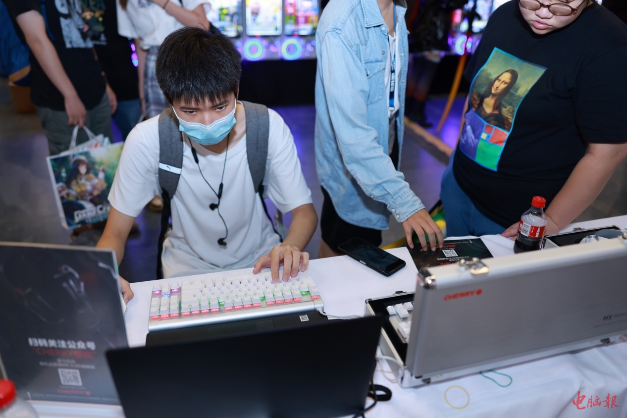 人流涌动、人头攒动……Cherry的8系套装俨然成为了关注焦点,过往人群纷纷前来进行试用,几乎都对其赞不绝口。虽然展会现场比较嘈杂,但是戴上HC8.2耳机、将手放在MX8.0键盘和MC8.1鼠标上,战斗状态一下子就能升到满格,还有这红彤彤的CHERRY LOGO和流光溢彩的RGB灯光,难道战斗力还不能加成80%?