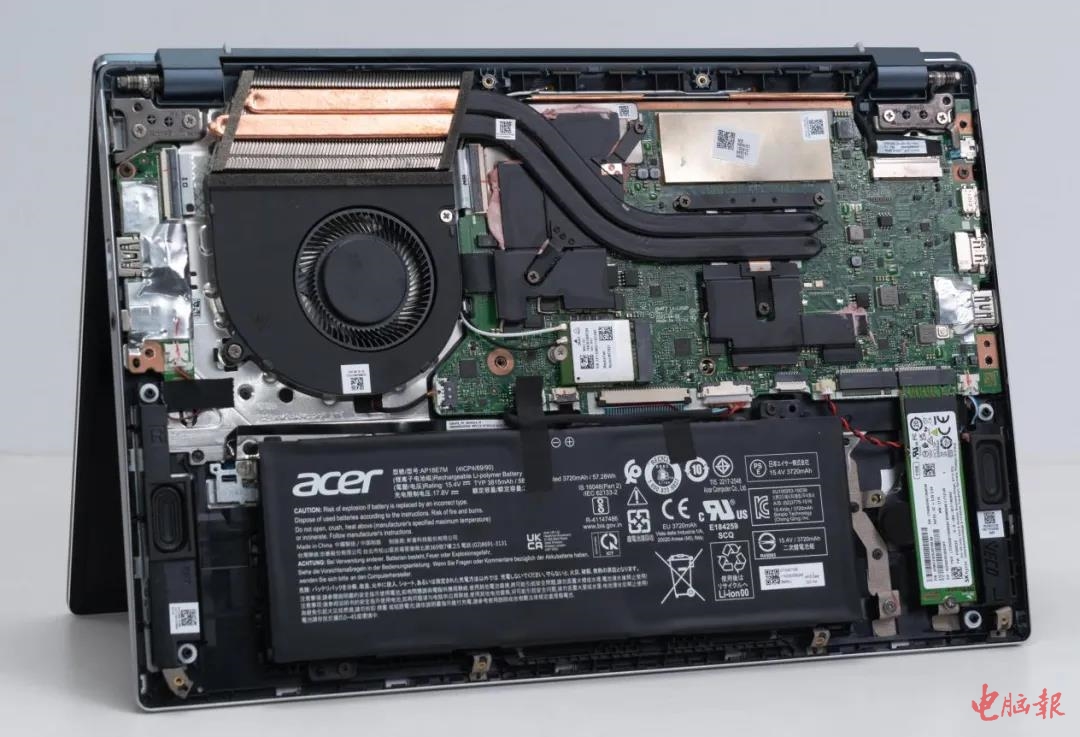 ▲该机采用单风扇双热管散热,有第二根M.2插槽。