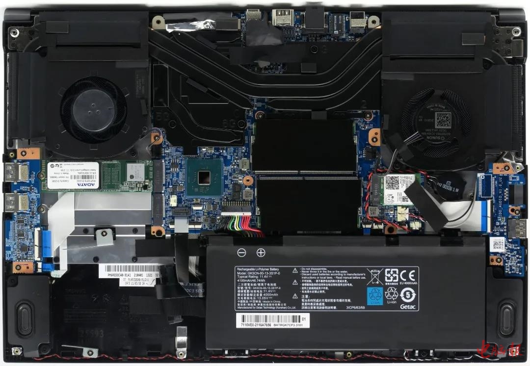 ●配置规格比较高,双风扇五热管设计。存储是三盘位,两根M.2 SSD位,一个2.5英寸位,要想速度起飞,可以三个都用SSD。