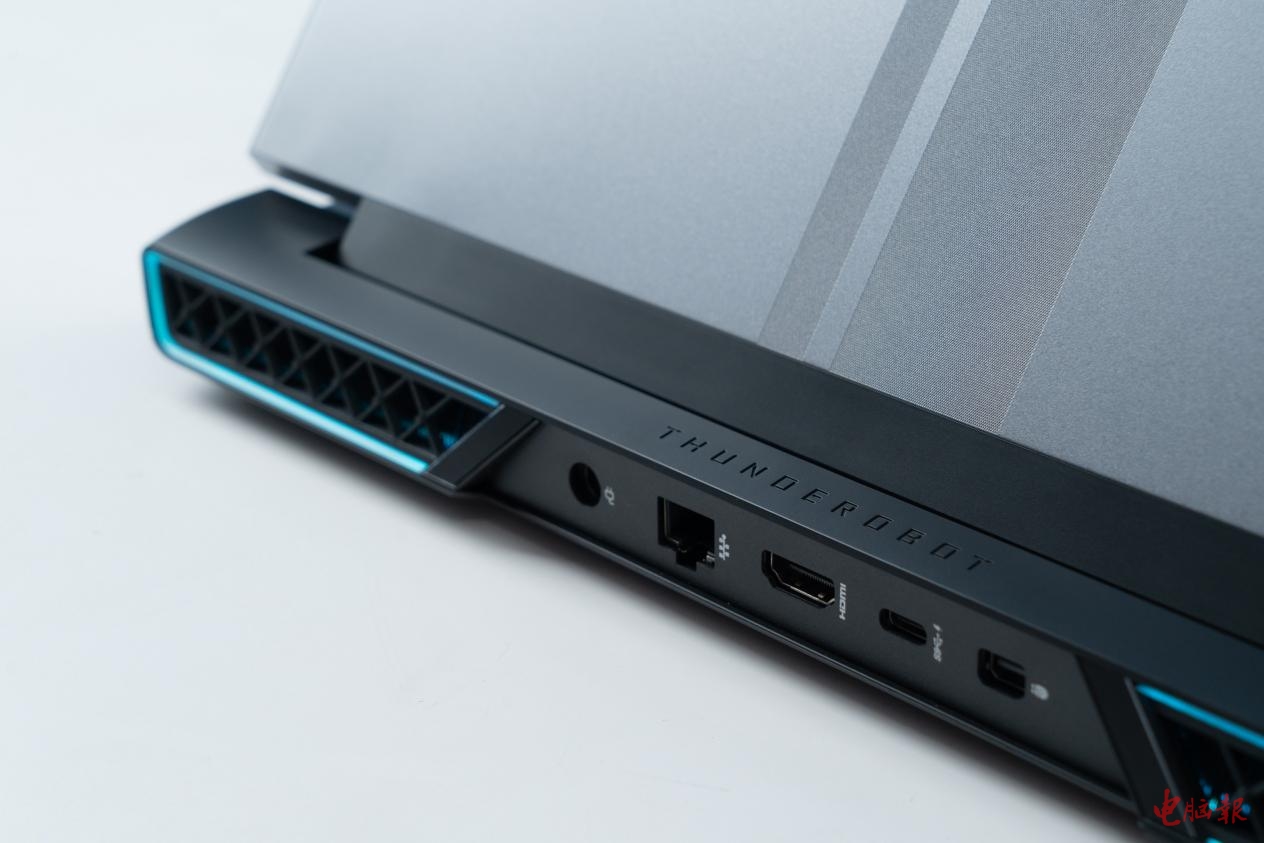 接口方面,雷神ZERO带有三个USB大口,而且是左右侧均有分布,易用性做的不错。尾部有HDMI2.0、Mini DP、Type-C(支持数据和DP1.3)等扩展口,视频扩展能力比较强。