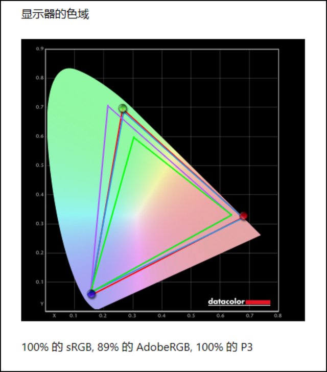 ▲实测色域100%sRGB,100%P3,符合宣传。48的色准最大值3.34,最小值0.06,平均值0.56,一般来说,2.5K 240Hz屏的色准表现都不错,这点大家基本不用担心,用作视频创作没问题。