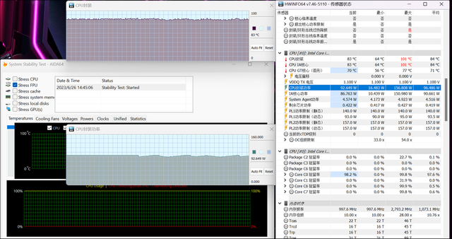 另:该机在性能模式下处理器考机功耗90~95W,温度也就83℃左右。依然有较大的超标性能释放,并且风扇噪声相当低——就我的感受来说,甚至比部分H45轻薄本还低,体验不错。