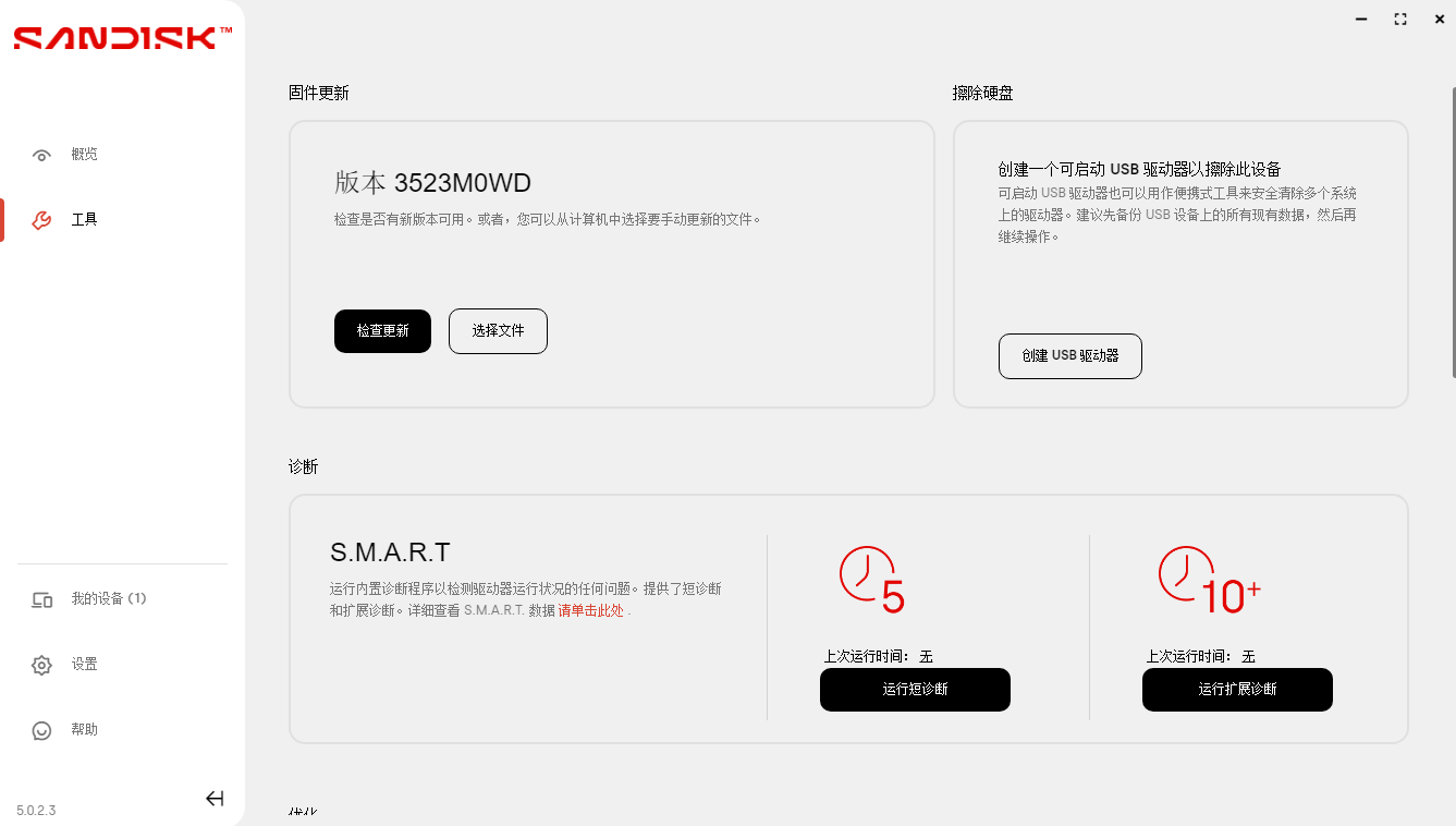 用户可通过链接:https://sddashboarddownloads.sandisk.com/wdDashboard/DashboardSetup.exe下载官方固态硬盘管理软件(SANDISK Dashboard)。