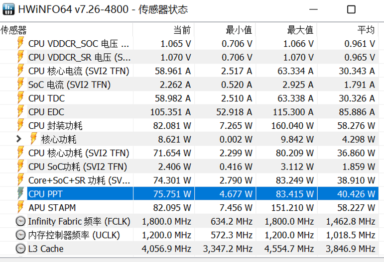 拯救者R9000X 2022处理器满载输出最高功率可达83.415W