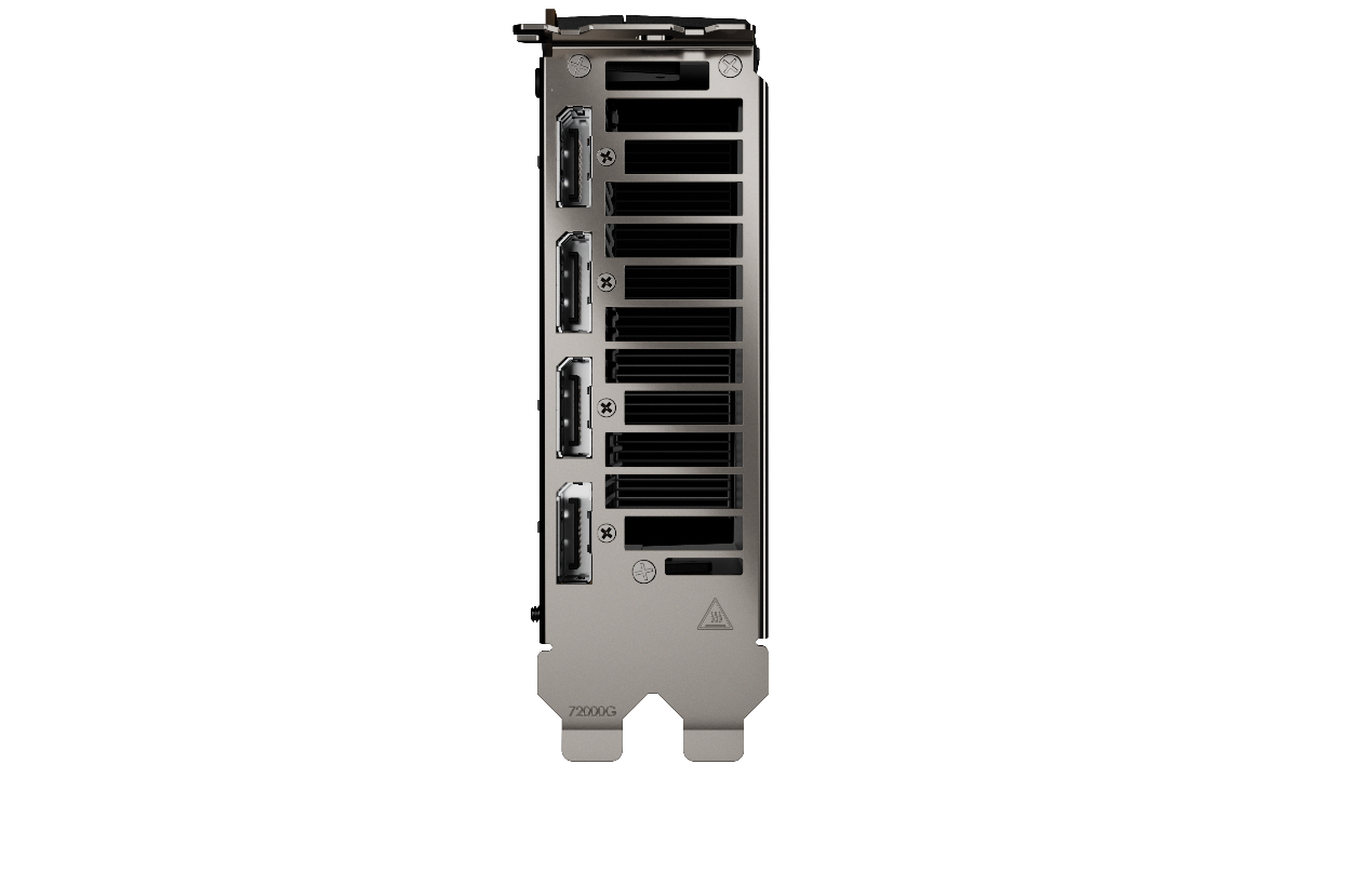 接口方面,该显卡配备了4个DP2.1接口(UHBR13.5),接口带宽为52.2Gbit/s。在高带宽的支持下,它能支持最多4个4K(3840×2160)/ 5K(5120×2880)显示,2个8K(7680×4320,使用DSC),最高分辨率则能支持到1个10K分辨率显示(使用DSC)。这样的规格足以满足绝大部分使用者对高分辨率显示的需求。