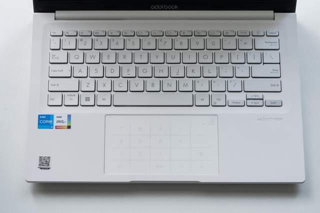 a豆14 Pro的C面,看上去是不是非常熟悉,键盘融入了华硕轻薄本的经典设计,包括0.2mm下凹弧面键盘和5.9英寸大尺寸数字触控板。