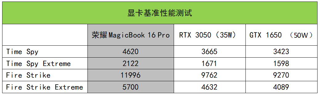 处理器性能释放测试小结:从测试来看,荣耀MagicBook 16 Pro的处理器有一定幅度的超标释放,同时55W的锐龙7 5800H性能表现不错,满载性能比65W的i7 11800H小胜一筹,而荣耀MagicBook 16 Pro的表现也足以与常规重量的游戏本一较高下——在处理器端,荣耀MagicBook 16 Pro表现完全稳妥!