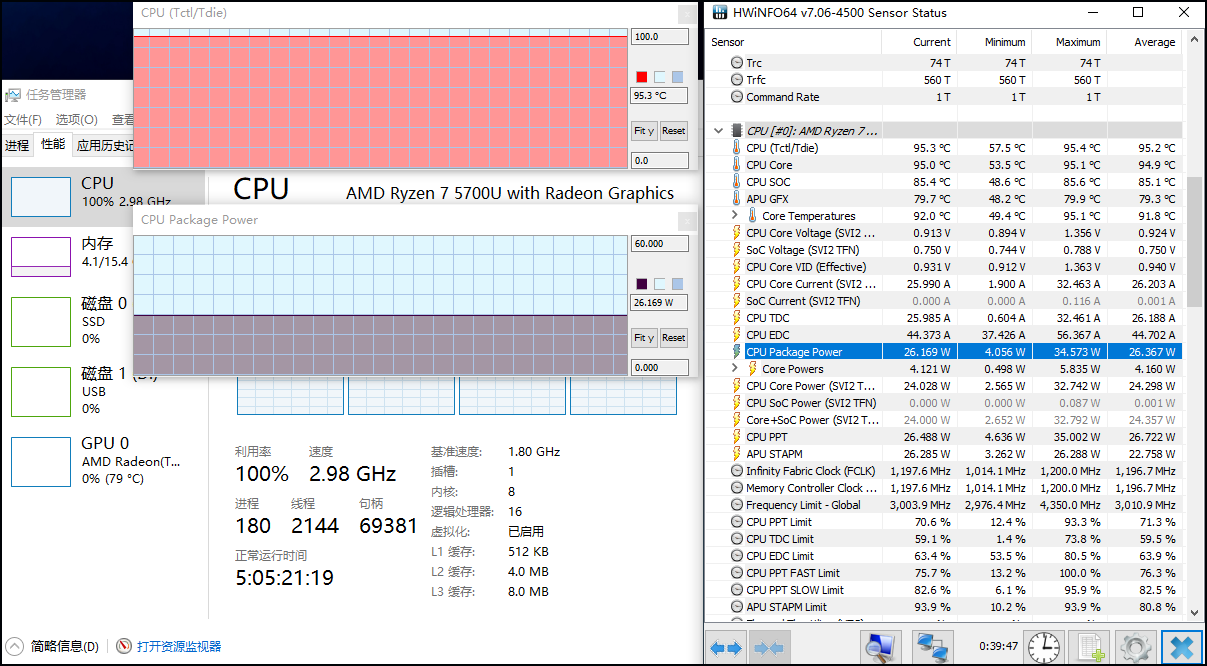 锐龙7 5700U可稳定26W+输出,日常应用轻松搞定