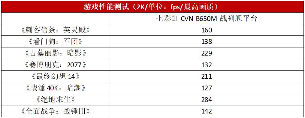 由于解锁了功耗墙,在游戏中锐龙9 7950X的性能表现很强劲,搭配Radeon RX 7900 XTX显卡,在2K分辨率下运行各种游戏大作均毫无压力。可见七彩虹CVN B650M战列舰在游戏性能的释放上同样表现出色。