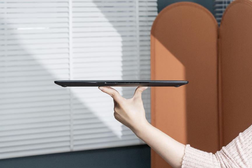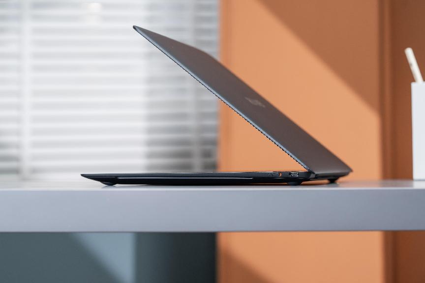 980g的重量,13.5mm的厚度,14.2英寸,赋予它独一档的便携性。对比同类产品1kg以上的重量,980g的机身重量完全是标杆般的存在,将高性能笔记本带入“百克时代”。
