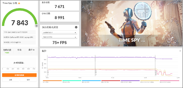 Time Spy场景测试,暗影骑士·擎显卡得分7671
