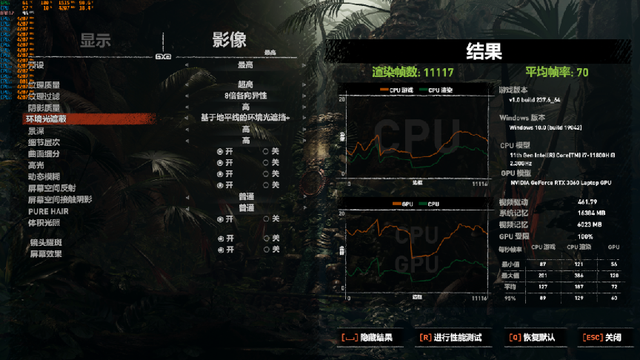 ▲《古墓丽影:暗影》,2K最高画质平均帧速70fps,高画质为84fps。